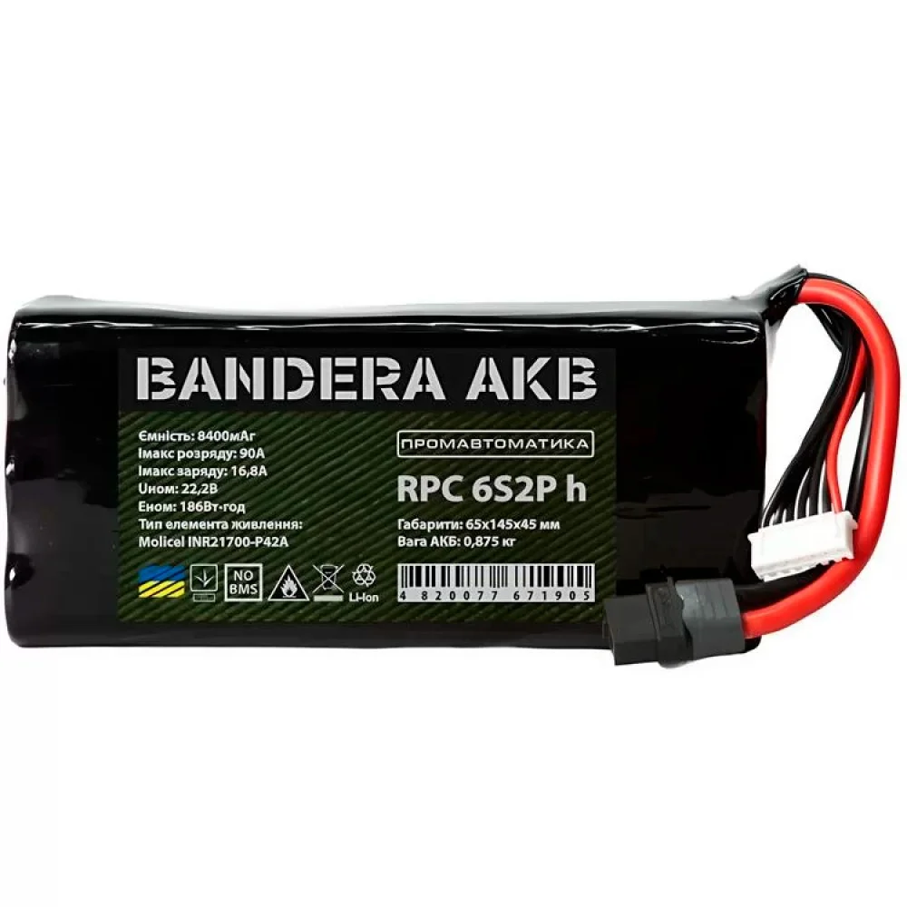 Опис Акумуляторна батарея LiIon 6s2p Molicel 21700 8400 mah 90A INR21700-P42 горизонтальний для FPV Bandera AKB Промавтоматика (ЦБ0024347)