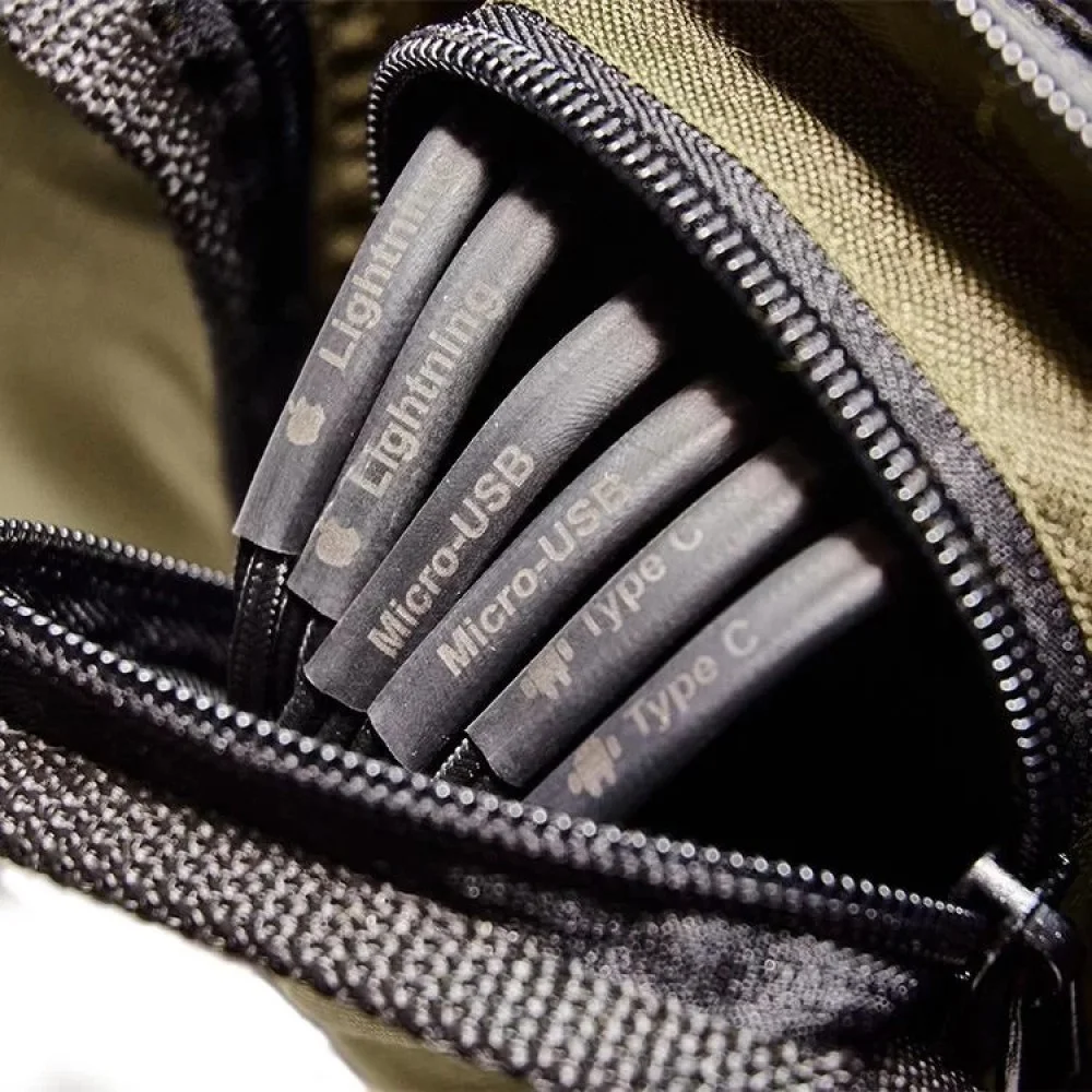 - 6 шнурів з роз'ємами для підзарядки (2 Micro USB, 2 Type C та 2 Lightning);