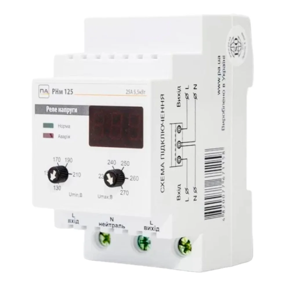Реле напруги Промавтоматика РНм 125 25A на DIN рейку