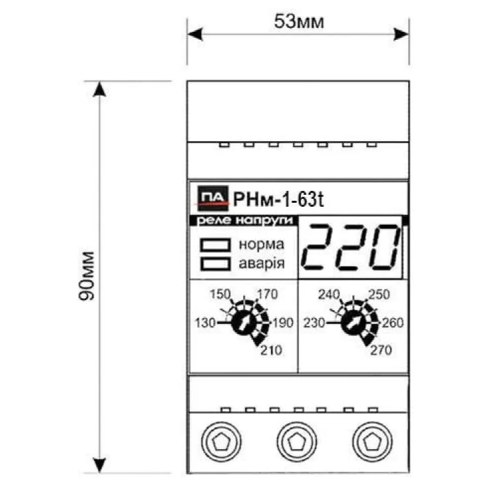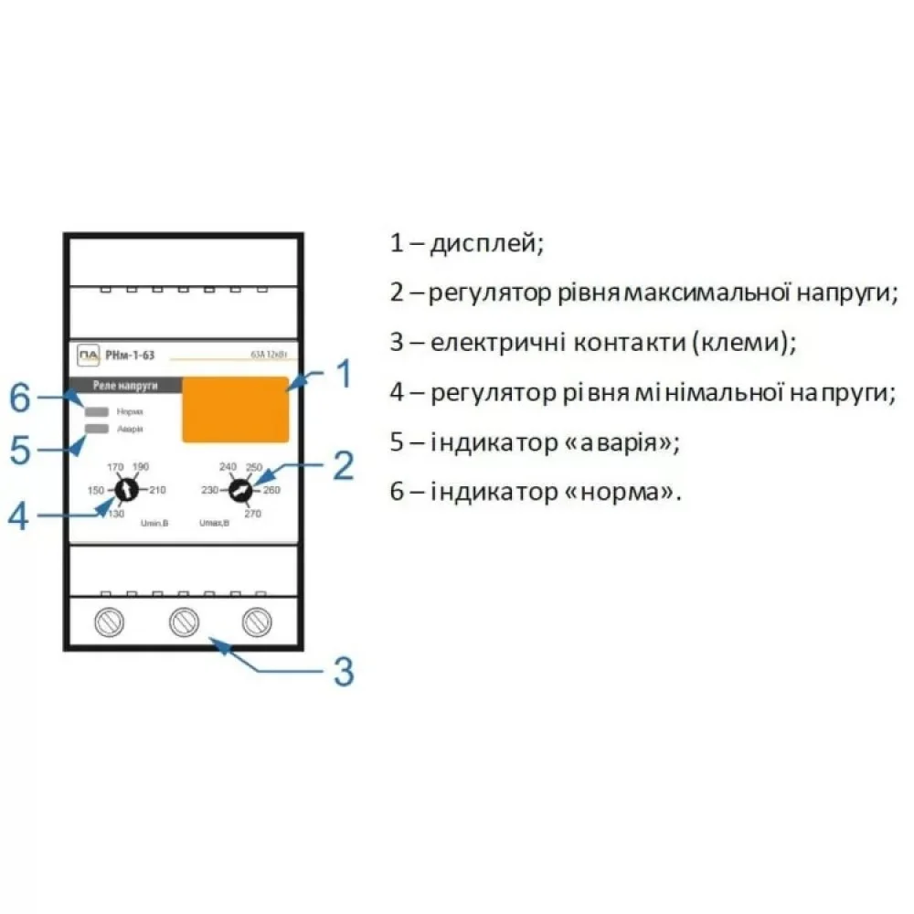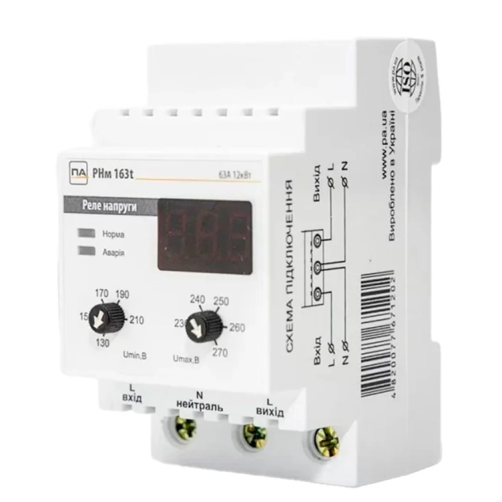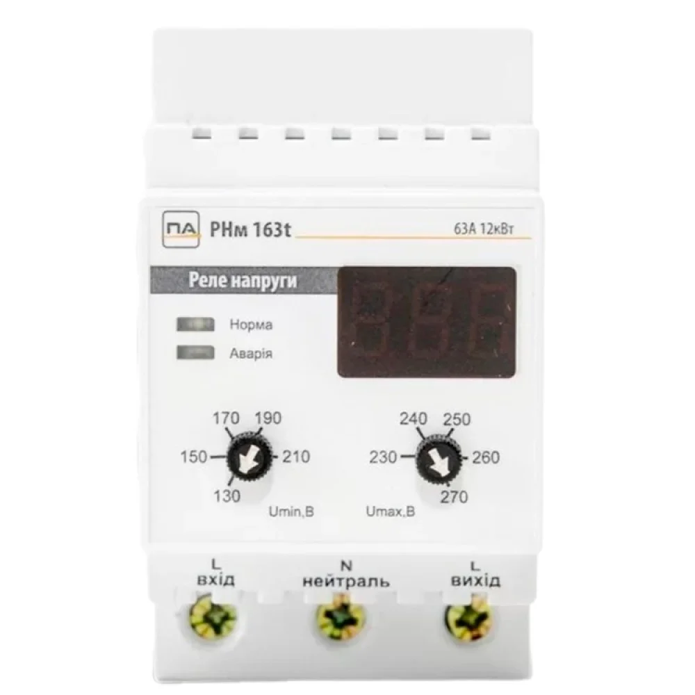 Реле напруги Промавтоматика РНм 163 t 63A на DIN рейку (термозахист)